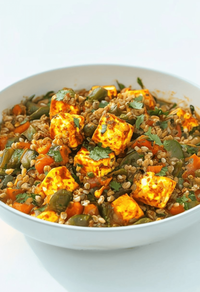 A quick one-pot paneer breakfast dish loaded with vegetables, spices, and protein.